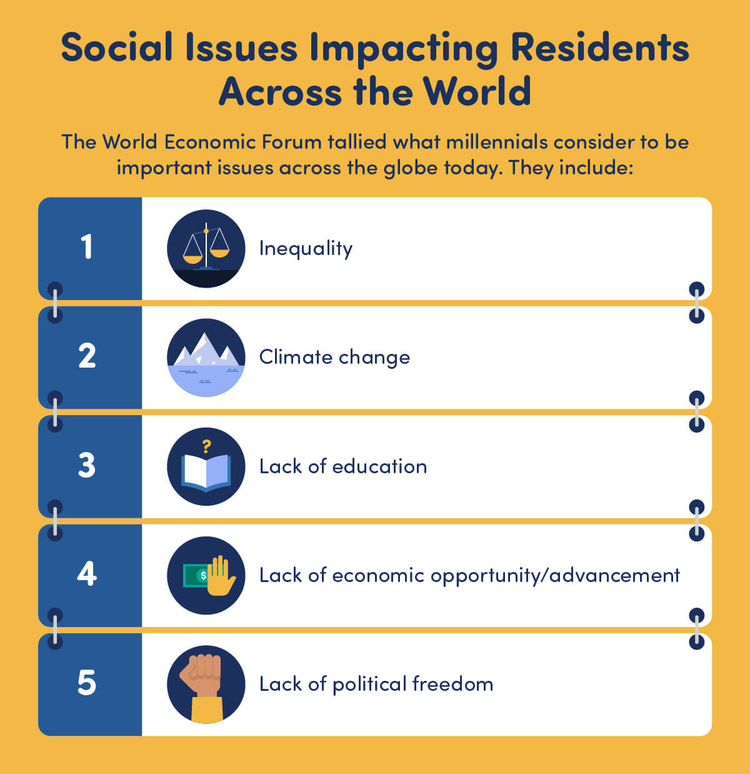 Regardless of the specific field they work in, the service they provide or the type of population they work with, social work professionals have a strong general understanding of larger societal trends and issues that are impacting individuals across the country and the world. Here are some of the issues that social workers typically tackle.